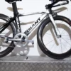 The Giant TT was designed for absolute speed against the clock. Its aluminium frame, paired with a carbon fork, delivers a balance of stiffness and comfort, ensuring optimal power transfer while maintaining control at high velocity. The Shimano Dura-Ace 10-speed groupset provides precise, reliable shifting, allowing riders to stay in their optimal cadence during the most critical seconds of a time trial. Complementing this setup are Zipp 404 carbon wheels, renowned for their aerodynamic efficiency and responsiveness—components that make this TT bike a machine built to shave seconds off the clock.