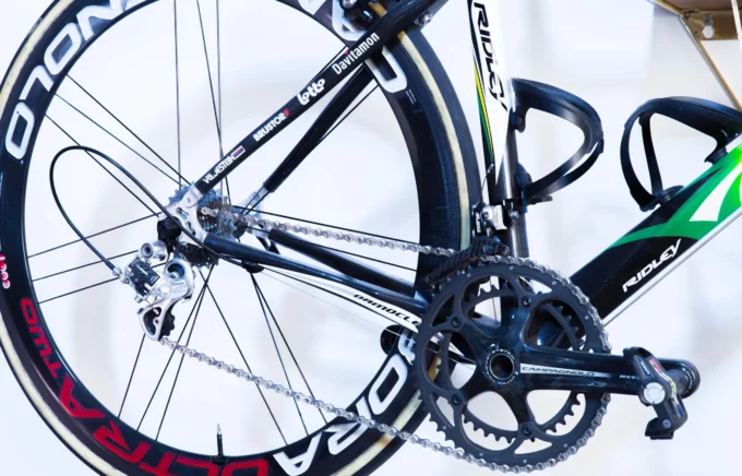 Owning this Ridley Damocles Team Davitamon-Lotto – Robbie McEwen is to hold a tangible piece of professional cycling history. It embodies the intersection of elite carbon frame design, high-performance componentry, and the legacy of one of the peloton’s fastest sprinters. The green-and-gold national champion livery elevates its status, linking the bicycle to McEwen’s victories for Australia and marking it as a unique and historically significant piece. Every detail, from the Campagnolo Record titanium drivetrain to the original team-specific build, reflects the technology and prestige of early 2000s pro cycling. For serious collectors and cycling enthusiasts, this bicycle offers a rare opportunity to acquire an authentic, visually striking, and historically important professional racing machine.