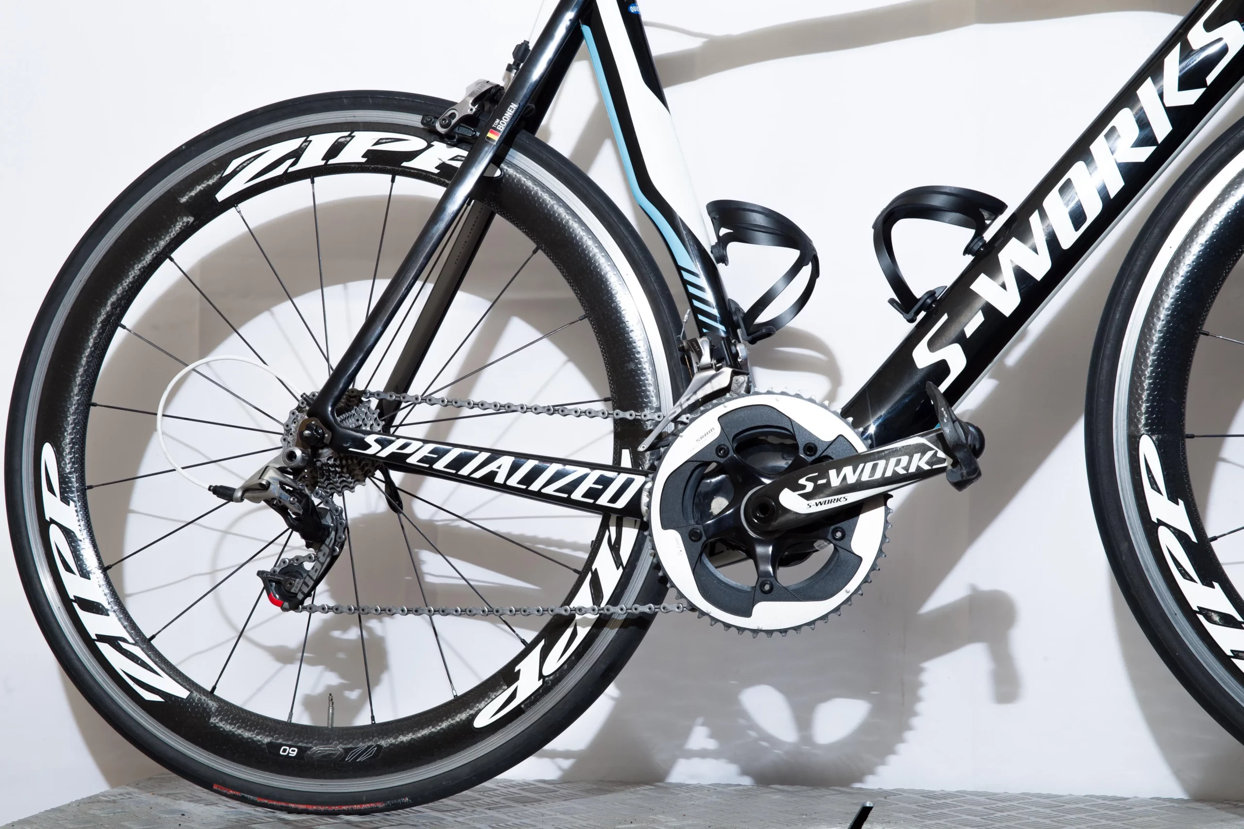 In summary, the Specialized S-Works Venge Team Etixx–Quick-Step ridden by Tom Boonen is a rare, original team-issued professional racing bicycle, fitted with a SRAM Red mechanical groupset, Zipp 404 wheels, and subtle team-issued details including the original rider name sticker on the top tube. For collectors and enthusiasts, it offers a direct link to one of cycling’s legends and an investment-grade opportunity that combines technical excellence, historical significance, and long-term value.